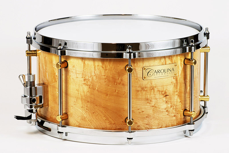 Carolina Drumworks Gold Series snares incorporate solid wood shells in stave, segment or steambent single ply configurations